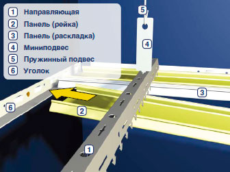 Мини-подвес используется в комбинации с пружинным подвесом для подвески потолка или самостоятельно для непосредственного жёсткого крепления к потолку.